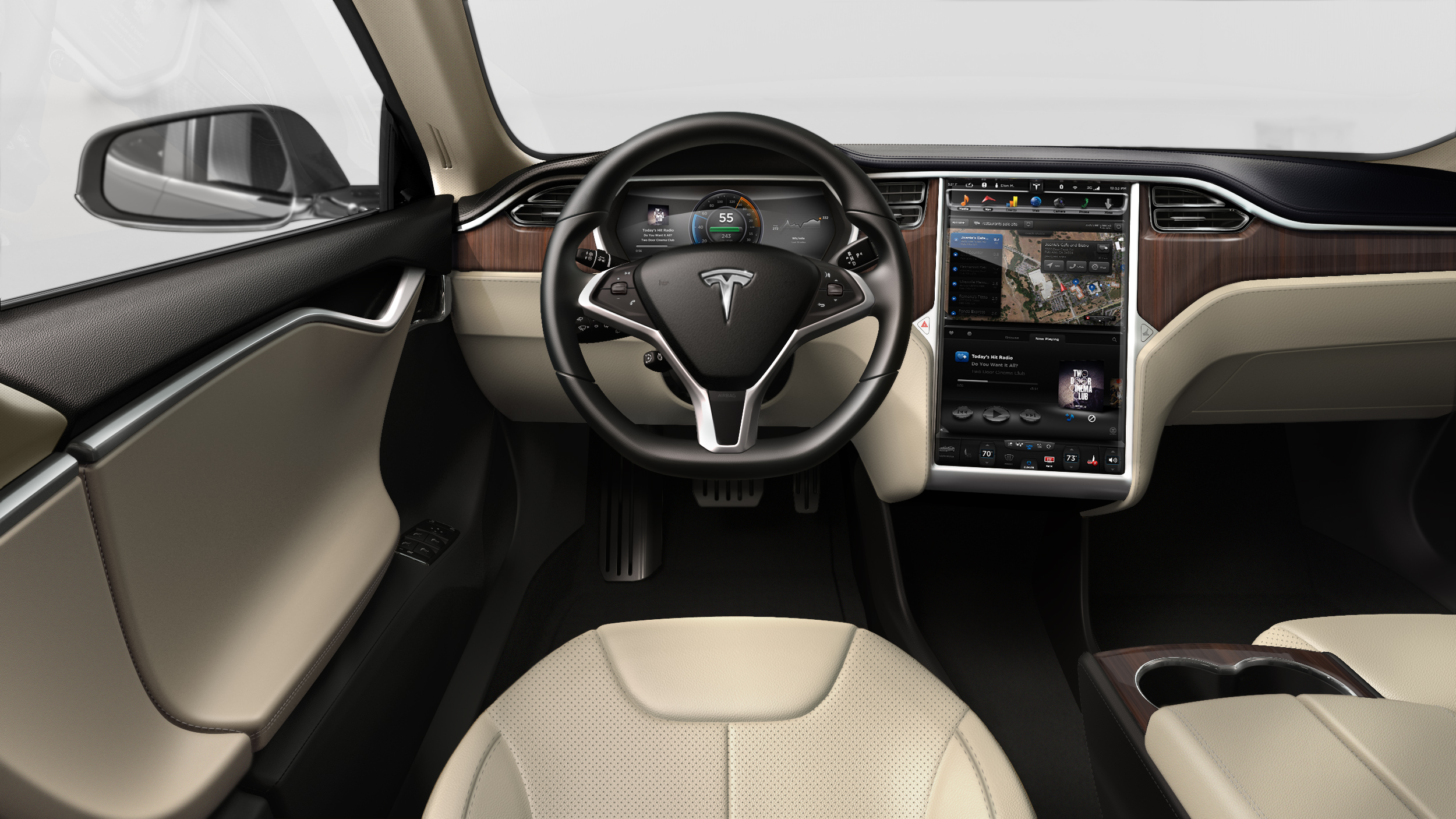테슬라의 대시 보드에 설치된 대형 터치 스크린 디자인은 테슬라가 지난 10년동안 테슬라 모델 S에서 부터 시작해 지금까지의 테슬라 차량에 차량 내부 인테리어 디자인에 큰 역활을 하였습니다.