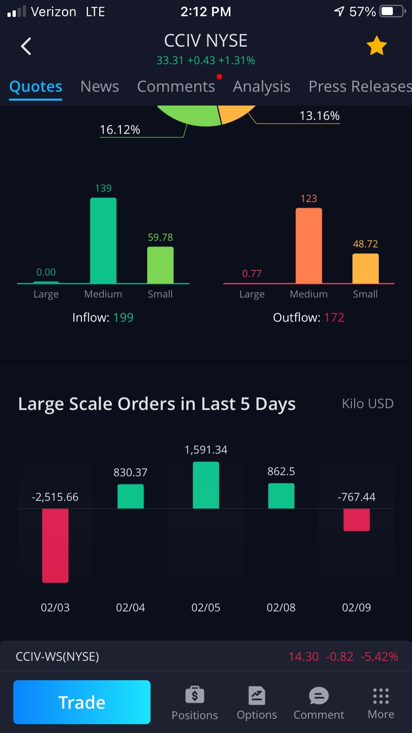 오늘 cciv 관련 소식으로는 새로운 기관에서 cciv 매수했다는 소식이 있었습니다. 총 513390 주를매수 했다는 소식이 커뮤니티에서 들려오며 cciv의 bullish한 포지션을 주장하며 이에 많은 투자자들이 동조하는 모습을 보여주었습니다. 하지만 알아본 결과 정확히 이는 사실이 아니며 단지 기관들이 자신들의 포지션에 대한 보고을 오늘 했을 뿐이며 실상 이 기관들이 cciv를 매수한 시점은 루시드와의 합병 루머 이전으로 보이며 이는 이들의 총 보유 수량과 벨류를 보면 평단이 $10대인걸 확인 할수 있습니다. 때문에 이러한 기관들은 cciv에 대한 투자로 개인 투자자들과 달리 상대적으로 거의 리스크가 없으면서 자신들의 투자금의 단 몇 % 의 투자금을 CCIV에 투자했다고 보는 게 맞을 거 같습니다.