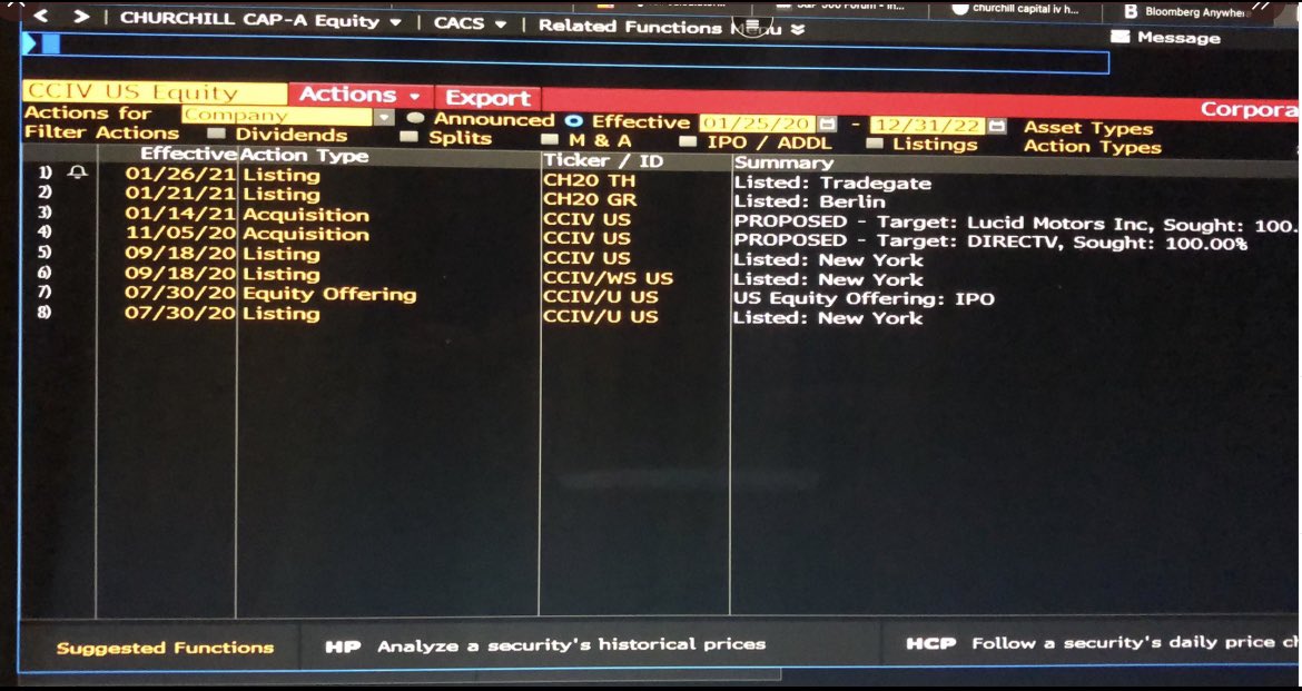 아시다싶히 블룸버그 터미널은 일 년에 약 $25000의 사용료는 내야하는 주로 기관 투자자나 전문 투자자들이 사용하는 온라인 증권 거래 소프트웨어로 알려져 있으며 보통 기사 같은 매체로 대중에게 알려지기 전에 블룸버그 터미널에서 더욱 빠르게 확인되는 경우가 있기 때문에 CCIV와 관련해 그동안 트레이드게이트나, CCIV가 루시드를 합병을 진행하고 있다는 정보 등으로 그동안 CCIV 주가에 큰 영향을 주었습니다.