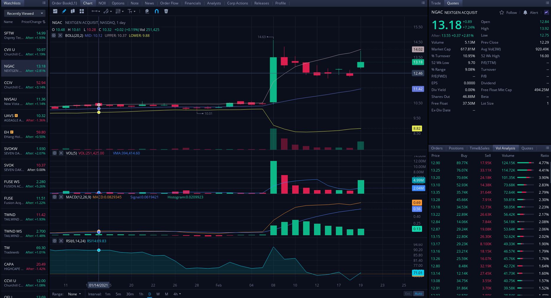 NGAC 스팩은 $350M 규모로 2020년 10월 6일에 상장된 스팩으로 루머로는 NGAC가 현재 PIPE를 통해 추가적으로 투자금을 모으고 있으며 빠르면 2월에 XOS와의 합병 발표가 있을 것이라는 기사가 있었습니다. 그리고 XOS의 기업의 가치는 약 $2B이 될것이라고 합니다. 때문에 이러한 기사가 발표된 후 NGAC의 주가는 한때 급등하며 거래가 중지되는 모습까지 보여주며 $14대에 거래되기도 하였습니다.