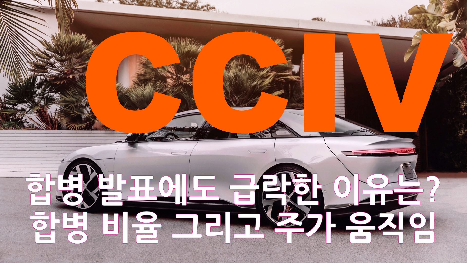 오늘 드디어 기다렸던 CCIV와 루시드의 합병 발표가 있었습니다. 당분간 CCIV 다루는건 조금 자제하려고 했는데 아무래도 오늘 DA이후 상승할것으로 예상하셨던 분들은 애프터마켓에서 하락하는 모습을 보시고 상당히 의아해하셨을 수 있을 거 같아서 짧게 한번 다루고 가도록 하겠습니다.