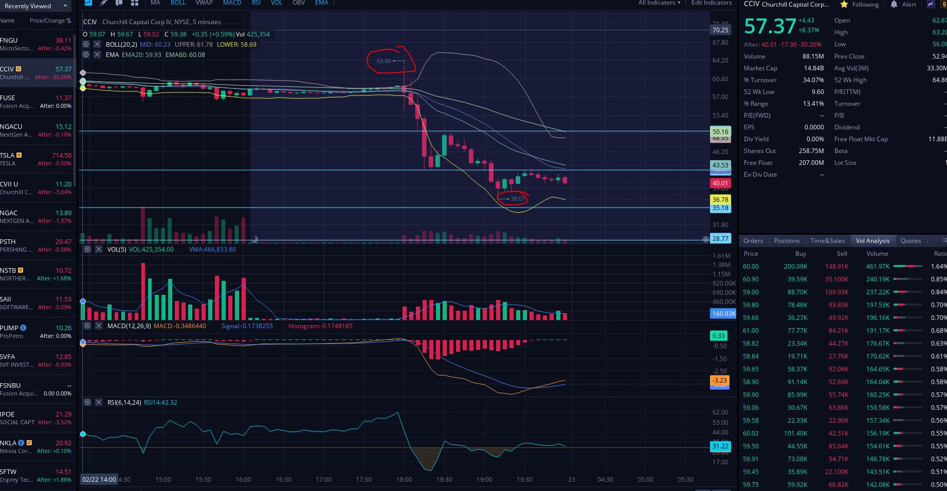 아마 오늘 애프터 아워에서 CCIV의 주가의 급락은 높은 차익실현도 있었다고 생각되지만 오늘 CCIV/루시드 합병 기사에서 PIPE의 $15 = $2.5B의 투자로 루시드의 가치가 $24B이 될거라는 이야기가 돌면서 아마 기업의 가치가 너무 높게 층적 됐다고 생각한 투자자들의 페닉 셀이 있었지 않았나 생각됩니다.