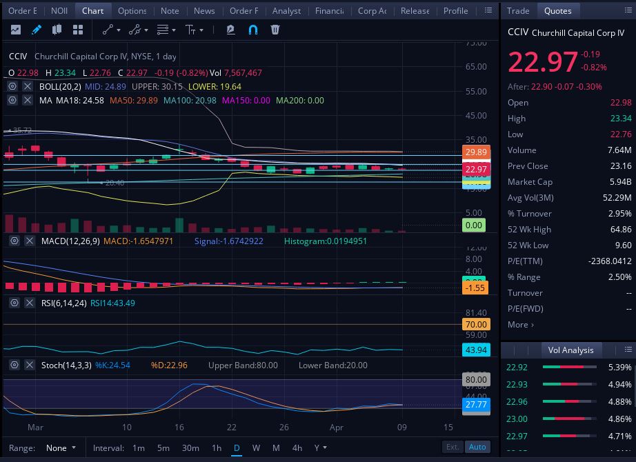 CCIV 주가는 금요일 전일대비 0.82% 하락한 $22.97센트로 장을 마감하였으며 여전히 $20 - $25 달러대를 횡보하면서 좀처럼 $25불 저항선을 돌파하지 못하고 있는 모습을 보여주고 있습니다.