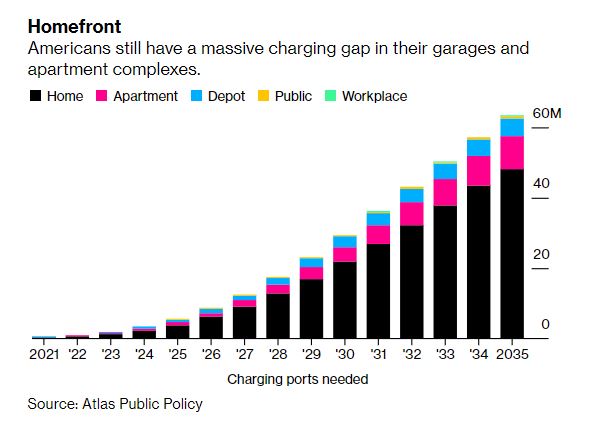 기사에 따르면 만약 계획대로 미국이 2035년까지 모든 자동차를 전기차로 한다면 미국인들은 대략 26MILLION의 새로운 충전 아웃렛을 주택과 아파트에 설치해야 할 것이며 이는 초가적으로 $39 BILLION 달러의 투자금이 들 수 있다는 소식입니다.