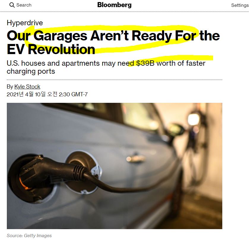 기사의 한줄 요약으로 말할 거 같으면 앞으로 미국 내 EV 전기차 시장은 커지고 많은 사람들이 EV 승요차를 비롯 EV SUV 그리고 EV 픽업트럭 등 다양한 전기 자동차가 출시될 예 저이지만 반면 미국 내 주택들과 아파트들을 이러한 수요에 대비 충전할 수 있는 설비가 되어 있지 않다는 기사입니다.