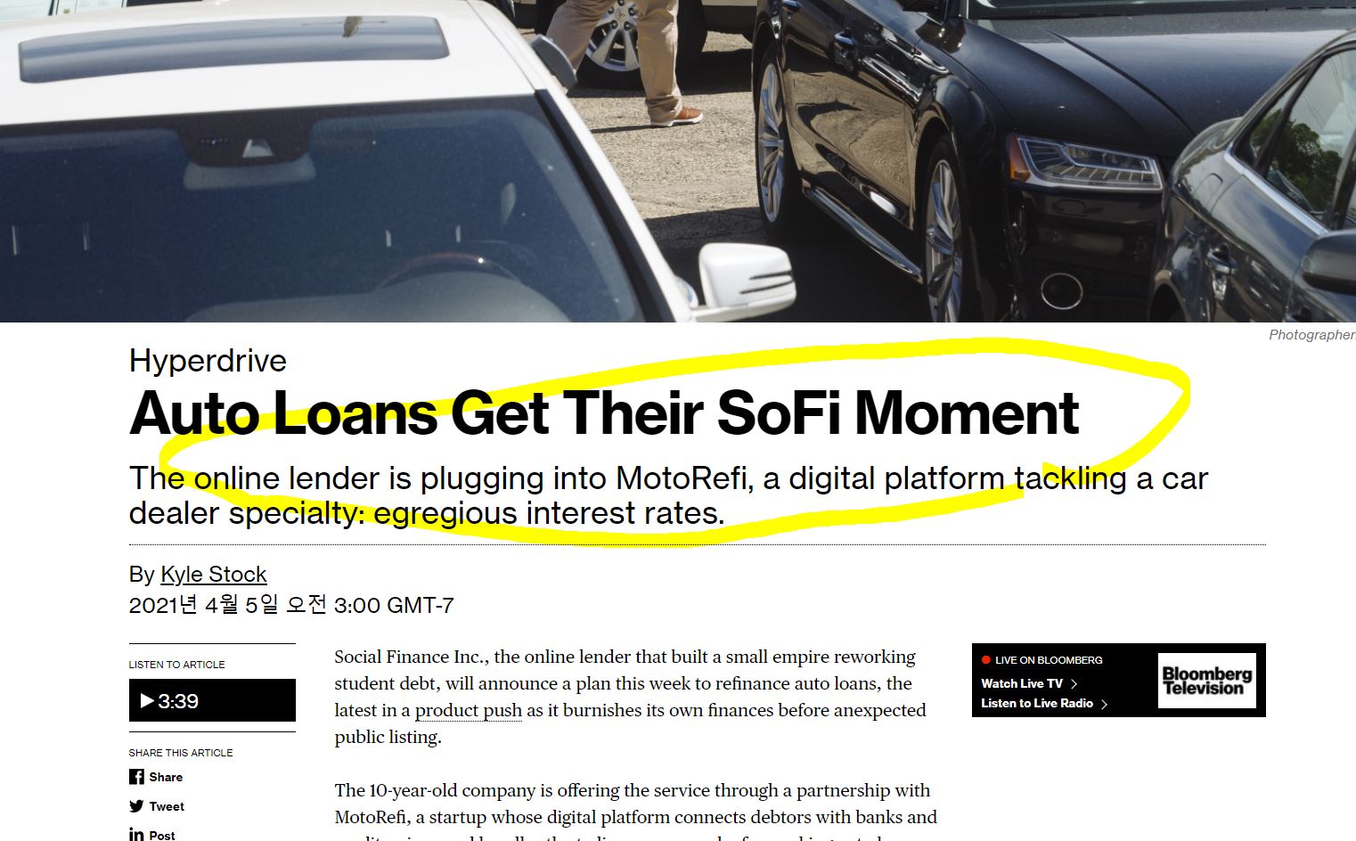 오늘은 많은 분들이 스팩붐이 불었을 당시 많이들 투자하신 SOFI 소파이와 관련된 소식을 전해드리려 합니다. 블룸버그에 따르면 IPOE와 합병하는 SOFI는 이제 정식적인 미국 주식 시장 상장에 앞서 새로운 자동차 대출 재 융자 서비스를 MotoRefi와 파트너십을 체결해 SOFI 고객들에게 자동차 대출을 재융자받을 수 있게 되었습니다.