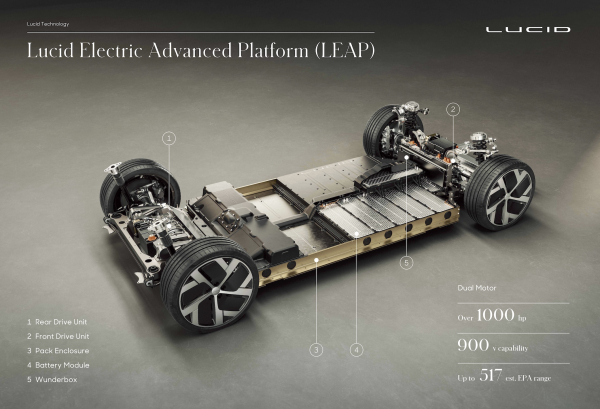전기차 배터리 개발 제조 기업으로 시작한 루시드 답게 현재 테슬라를 포함한 어떠한 전기차 기업들과 비교과 되지 않을 정도의 압도적인 기술력으로 전기차에서 현재 전기 충전 인프라가 세계적으로 갖추어 지지 않은 상태에서 전기차의 주행거리는 고객들에게 중요한 필수 조건이라고 할 수 있습니다. 루시드는 압도적인 한번 충전으로 517마일까지 주행할 수 있는 기술력으로 현재 어떠한 전기차 기업보다 기술력에서는 우위에 있다고 볼 수 있습니다.