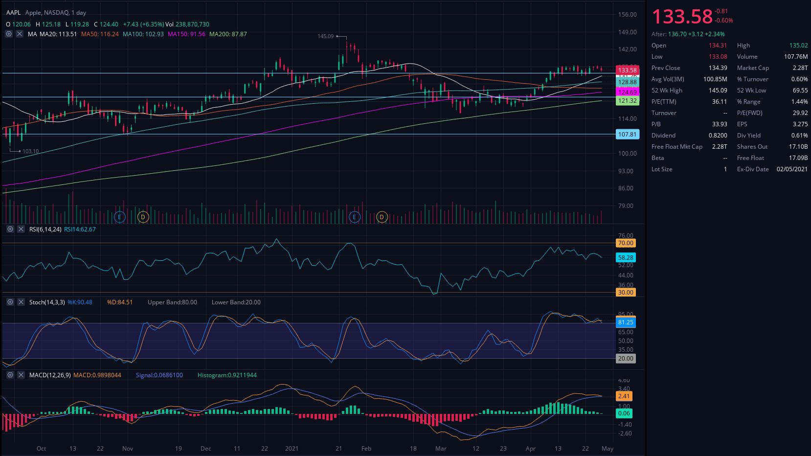 애플 APPLE (APPL) 회계 연도 2분기 실적 발표에서 애플의 기기들의 수요가 급증하며 수익 급상승으로 주가 애프터 아워에 2% 상승
