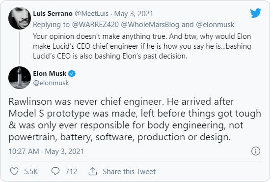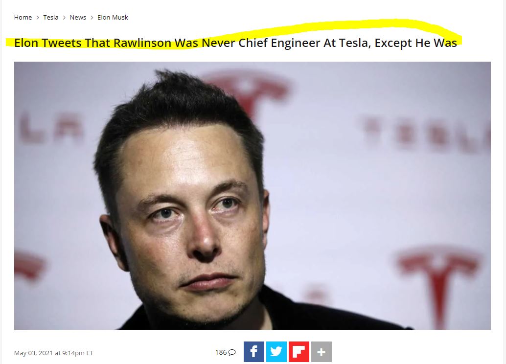 참고 관련 기사 링크: insideevs.com/news/505126/elon-musk-tweet-rawlinson-not-chief-engineer/