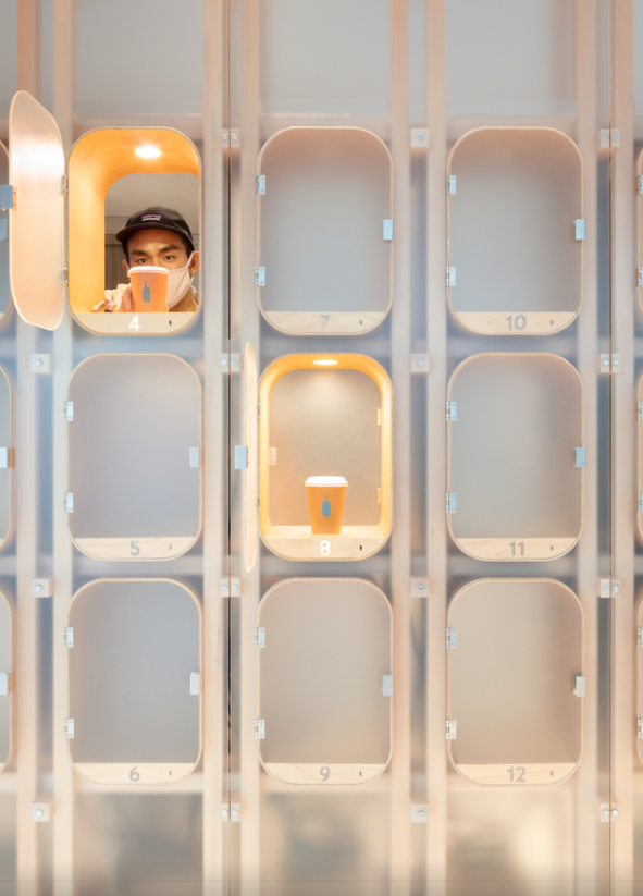 비대면을 염두한 시험적인 일본의 작은 커피숍 블루 보틀 커피 팝업 스토어