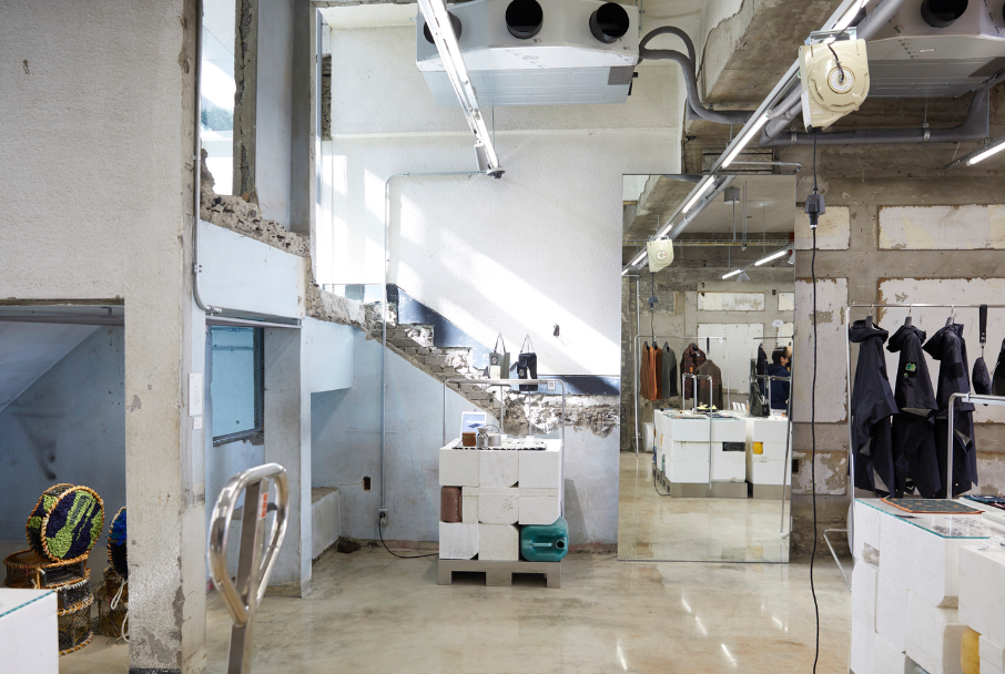 기본적으로 커피 실내 인테리어에서 입구에 가깝게 고객 응대 카운터를 두는것이 중요한 부분이었지만 당시 비대면 대책과 비대면 장소에 대한 수요가 지속적으로 증가함에 따라 설계사는 기존 커피숍과 다르게 지금은 익숙하게 볼 수 있는 터치스크린 디스플레이가 장착된 키오스크를 통해 주문하게 하였고 벌집에서 영감을 받은 여러 개의 공간에는 바리스타가 키오스트로 주문한 커피를 공간에 올려두면 빛이 은은하게 비추게 만드는 설계를 하였습니다. 바리스타와 고객은 이 벌집에 영감 받은 설계물에 공간이 나뉘어 있지만 최대한 불필요한 접촉은 최소화하면서 간접적으로 벌집 공간으로 부터 연결되어 있는 느낌을 받게 설계하였습니다.