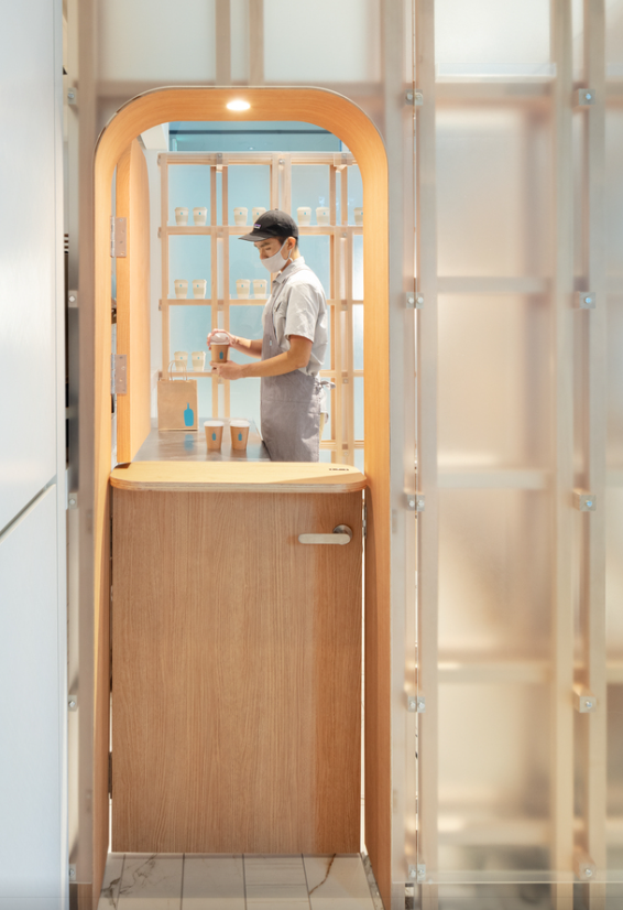 오늘 소개할 일본 도쿄 시부야의 블루 보틀 팝업 스토어는 블루 보틀 창업자가 건축가에 제의를 하면서 시작되었다고 알려져 있으며 한창 비대면 대책이 부각되면서 대면적으로 고객 응대가 어려워진 상황을 고려해 설계사는 벌집의 이미지에서 영감을 받아 혁신적인 아이디어로 실험적인 설계를 시도하였습니다.