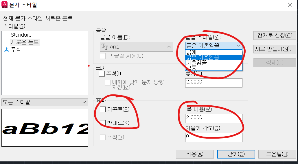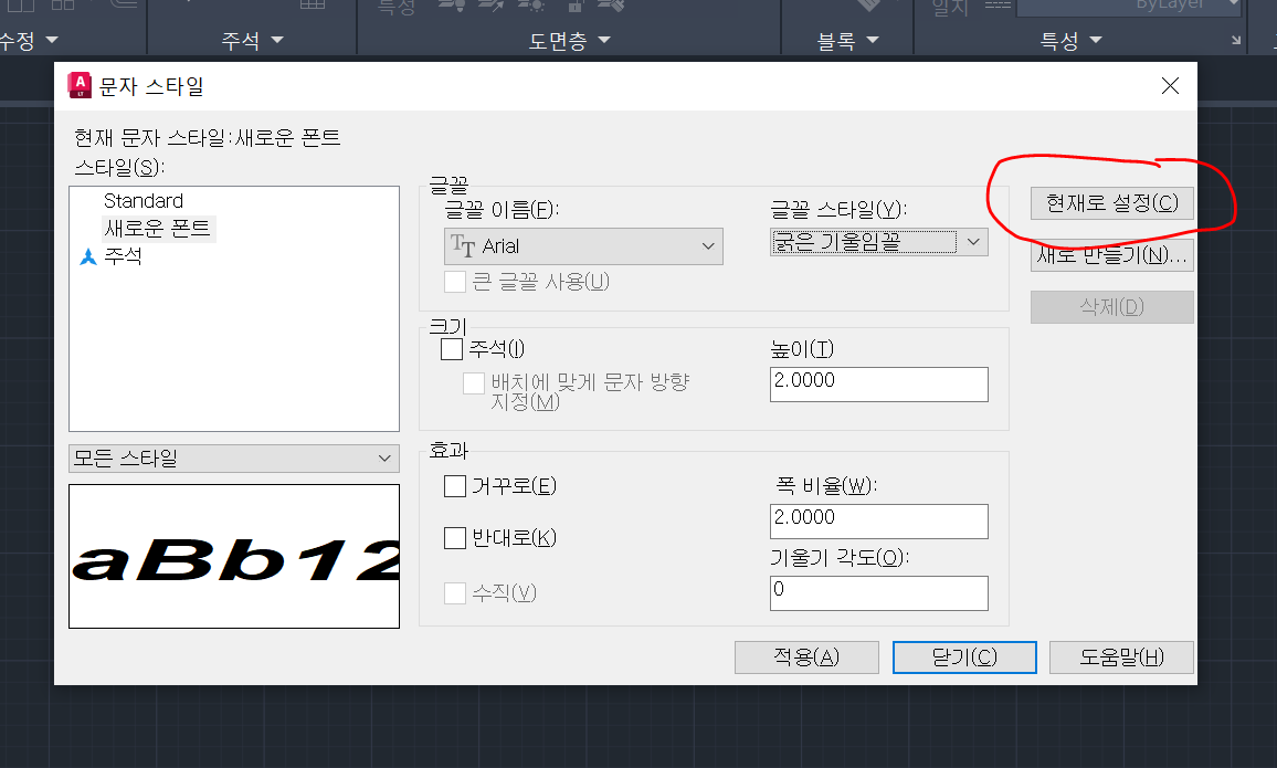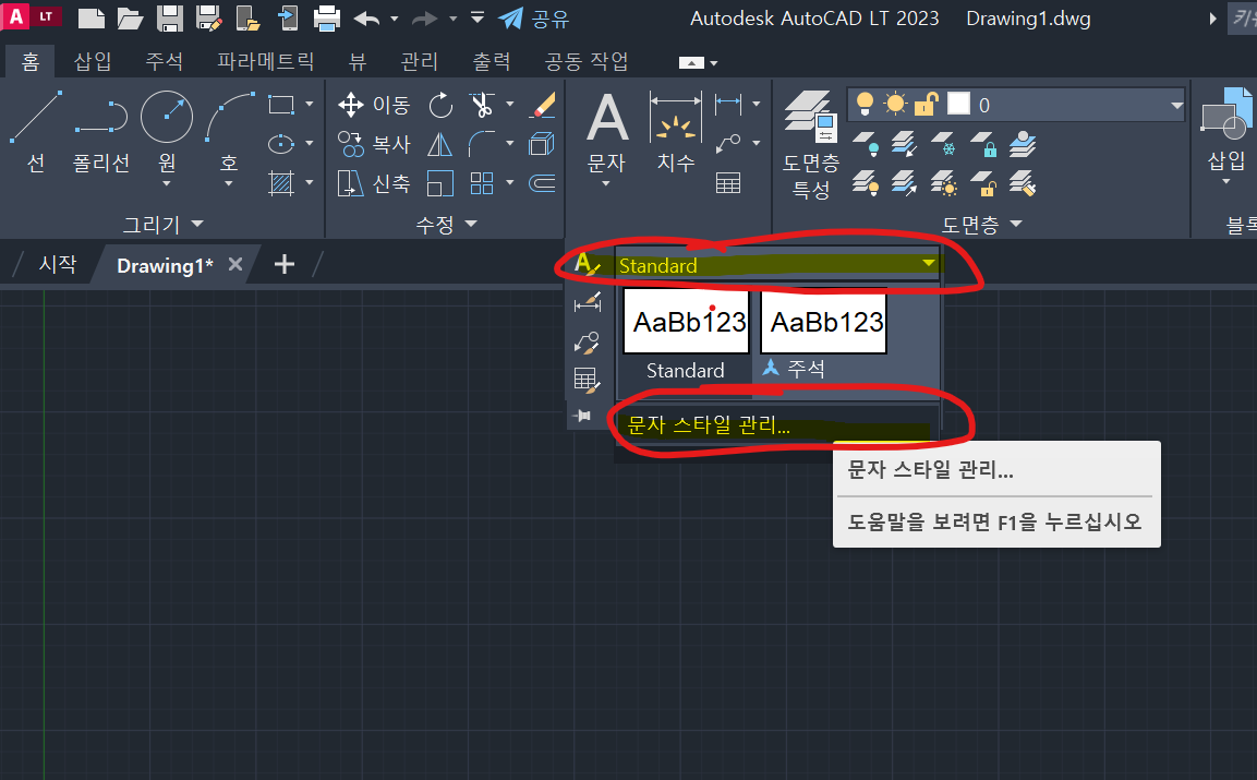 *명령어에 키보드 단축키로 "st" 를 써도 문자 스타일 관리 옵션을 선택할 수 있습니다.