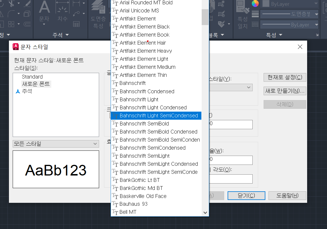 사용자가 원하는 폰트가 따로 있고 아직 컴퓨터 시스템에 추가가 되어 있지 않다면 폰트 파일을 다운로드하셔서 설치해주신 후 오토캐드를 다시 실행해주시면 오토캐드 문자 스타일에 추가됩니다.