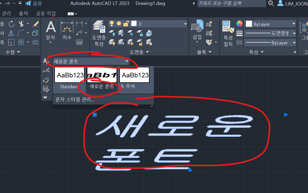도면에 새 폰트 사용