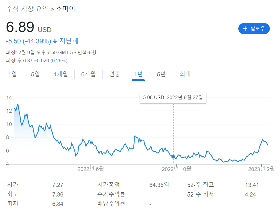 따라서 소파이 주식에 투자하기 전에 주식 가치가 하락할 때까지 기다리는 것이 현명할 수 있습니다.