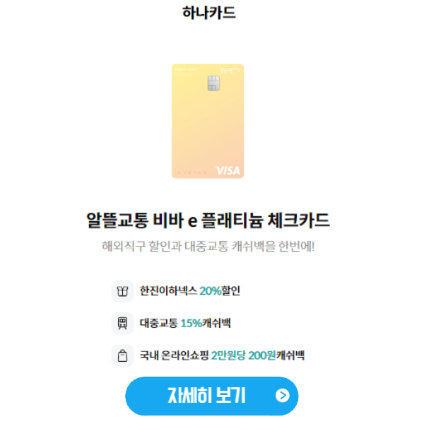 - 하나카드: 알뜰교통 비바 e 플래티늄 체크카드