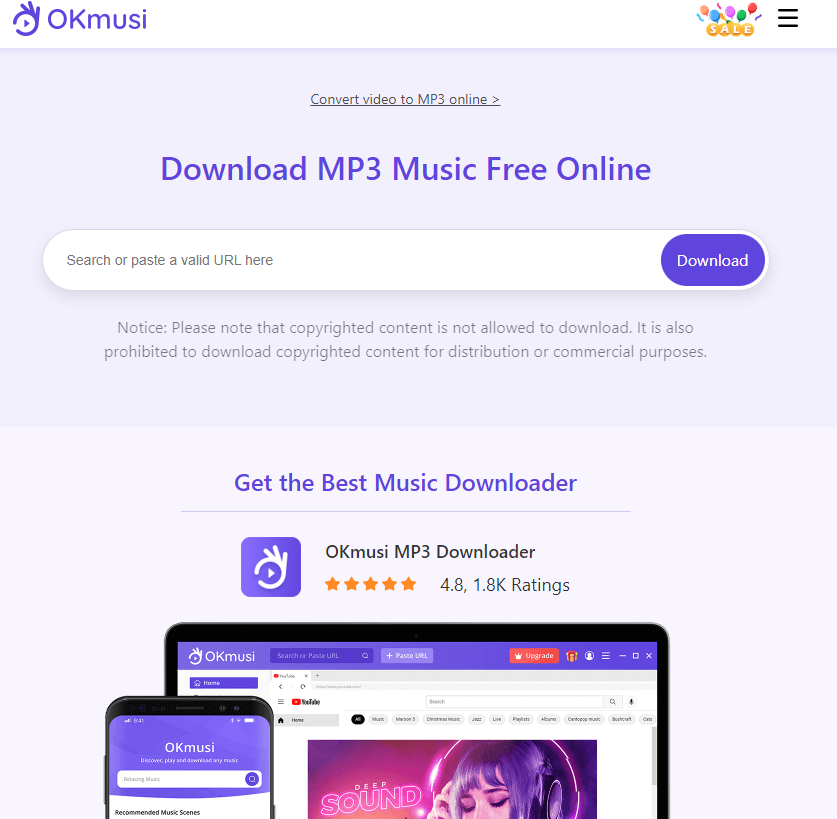 Okmusi 음악 다운로드 사이트는 위에 설명 드렸던 Mp3 Juices와 같이 가입이 따로 필요 없이 사용 가능하다는 점이 장점입니다.