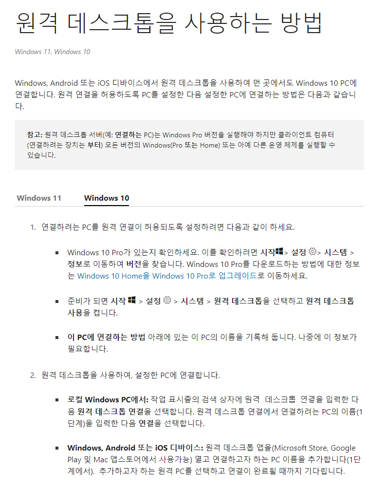 Windows Remote Desktop 사용 방법