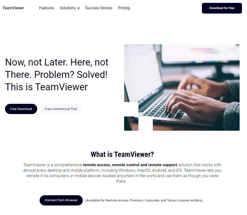 - TeamViewer는 Windows, macOS, Linux, Android 및 iOS를 포함한 여러 가지 플랫폼에서 사용할 수 있기 때문에 원격제어할 장치에 상관없이 원활한 원격제어 서비스를 제공합니다.