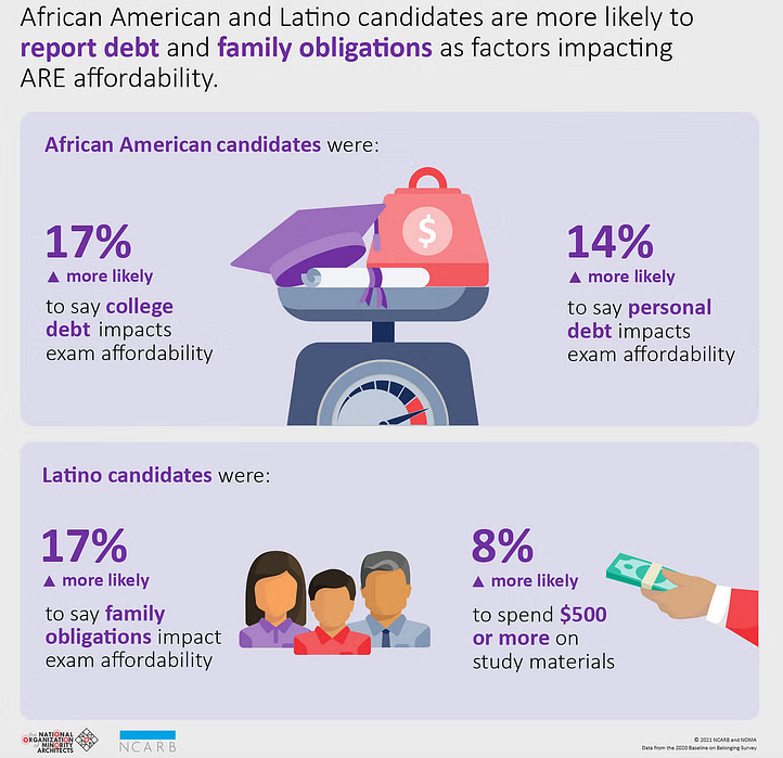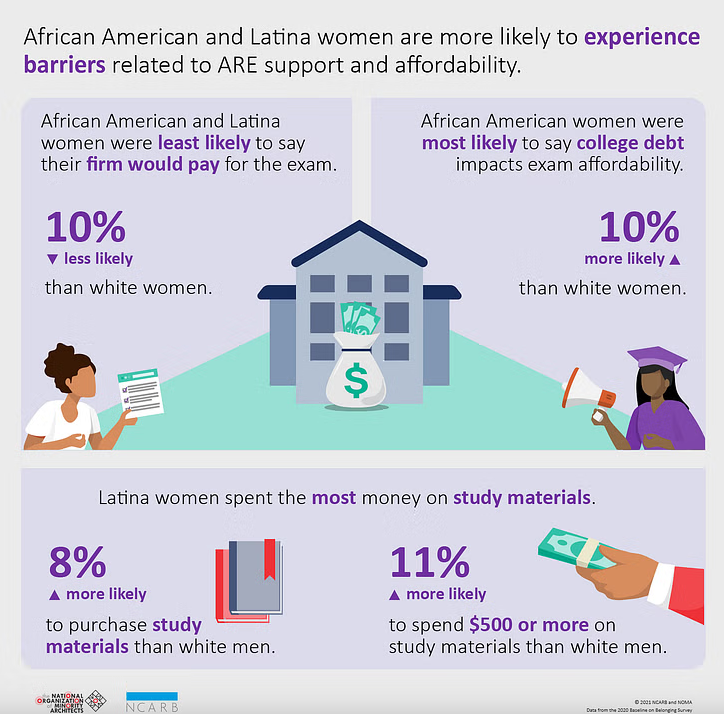 이런 차이가 왜 생기는 것일까요? NCARB와 NOMA(소수민족 건축가 협회)가 공동으로 진행한 '소속감 기준선' 보고서에 따르면, 크게 두 가지 요인이 있습니다: 비용과 문화입니다.