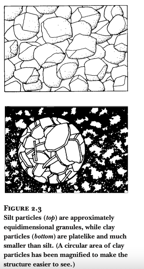 e) 실트: 맨눈으로 보기 어려울 정도로 작은 입자들이에요. (0.075mm-0.005mm)