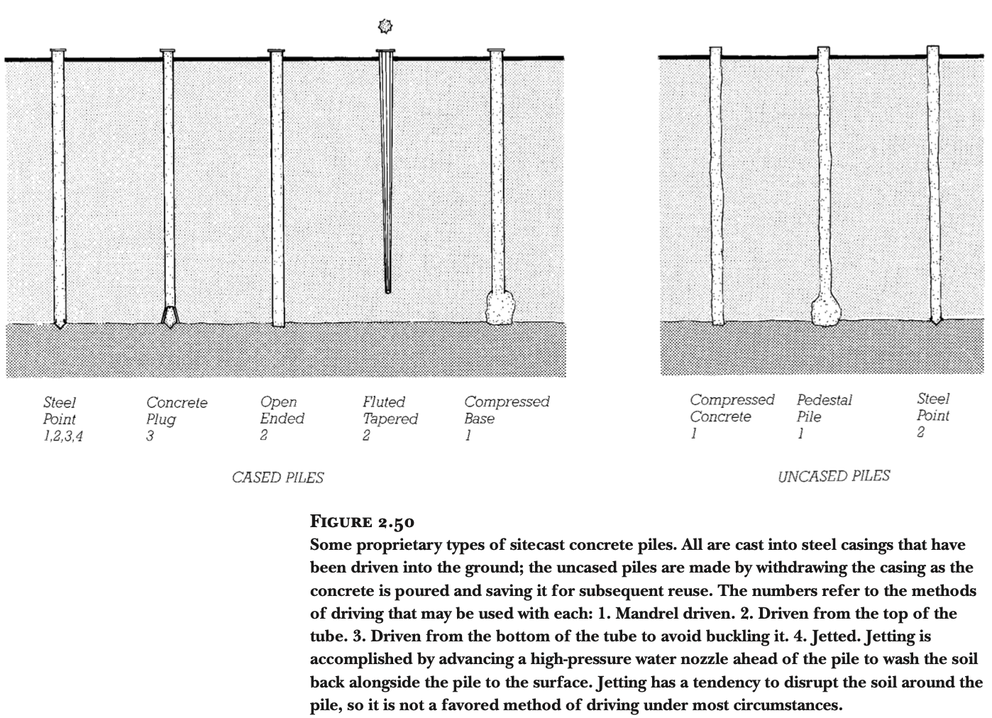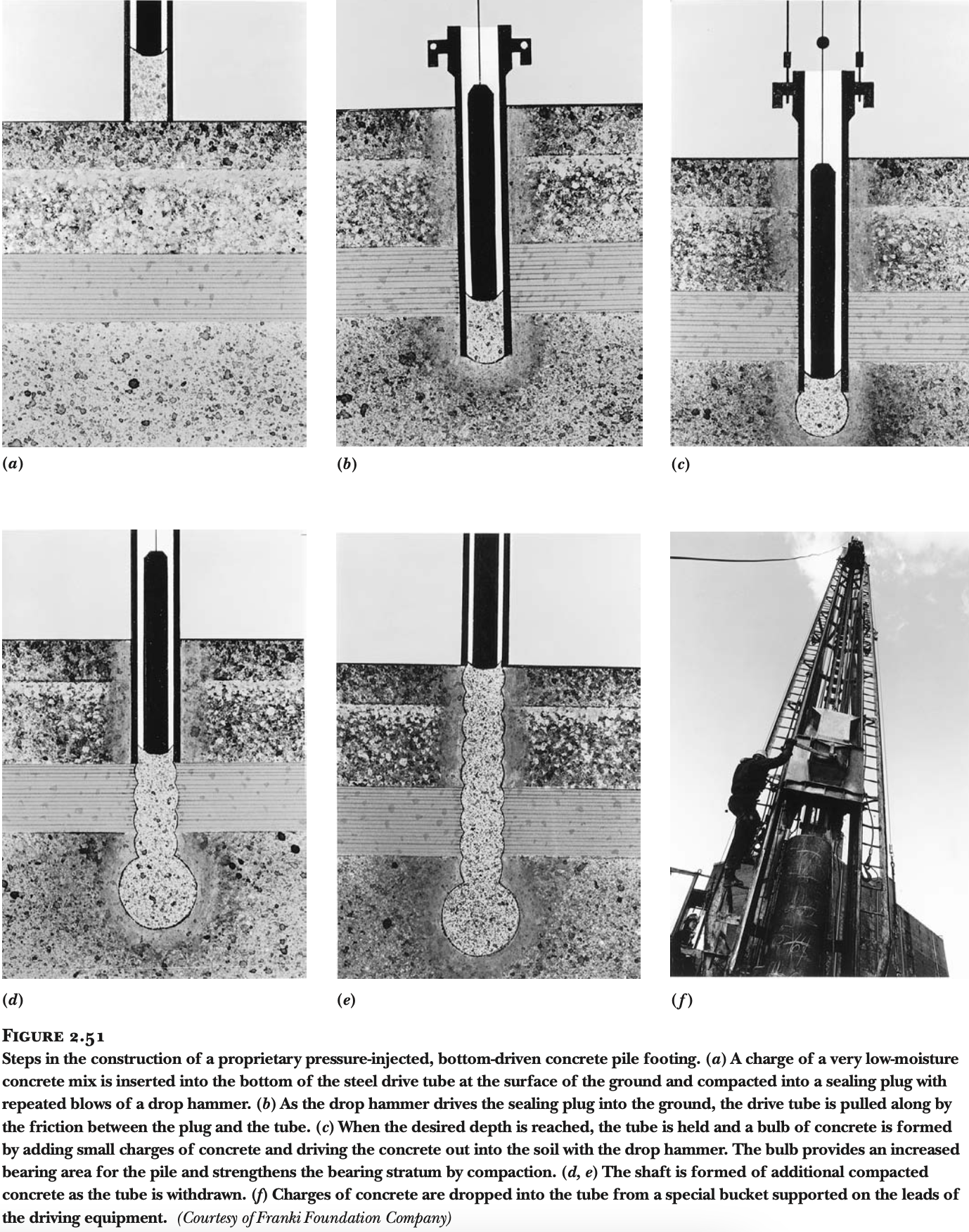 다양한 독점 현장타설 콘크리트 말뚝 시스템이 있으며, 각각 장단점이 있습니다 (그림 2.50 참조).