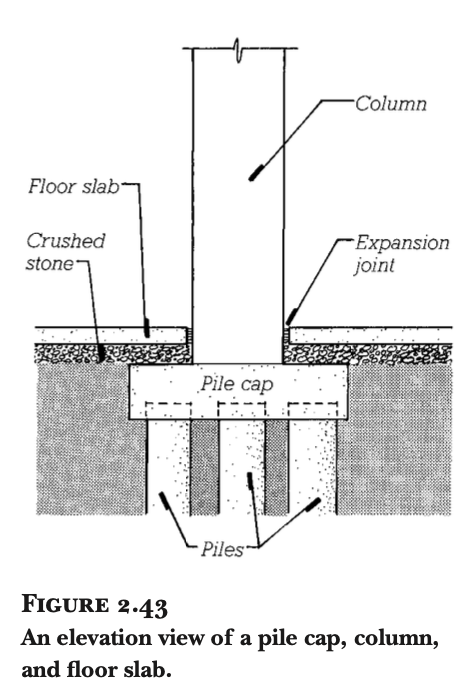 케이슨 또는 드릴드 피어(drilled pier)는 (그림 2.37 참조) 기둥 푸팅과 유사하게 기둥의 하중을 토양의 허용 응력을 초과하지 않는 충분히 넓은 면적으로 분산시킵니다. 그러나 케이슨은 건물 하부구조 아래의 부적합한 토양층을 관통하여 더 적합한 지층에 도달한다는 점에서 기둥 푸팅과 다릅니다.